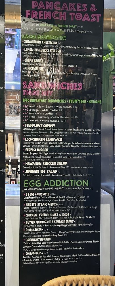 Welcome to Loco Social, an exhilarating breakfast and brunch spot located at 1291 Grandview Ave, Grandview Heights, OH. This vibrant eatery serves up a delightful array of offerings, each infused with creativity and flair. Start your day with their indulgent Biscuit Benedicts or the heartier Egg Addiction, featuring slow-roasted birria and jalapeño bacon chutney. The playful take on classic French toast, especially the Créme Brûlée version, has garnered rave reviews, while fluffy pancakes and unique dessert options like the Pink Barbie tantalize sweet tooth cravings.